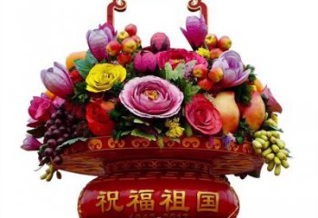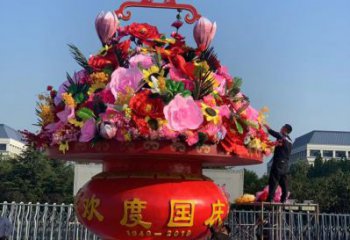 慶祝國慶節(jié)彩繪仿真大花籃雕塑
