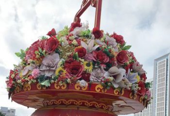 藝術(shù)性玻璃鋼彩繪大型花籃雕塑