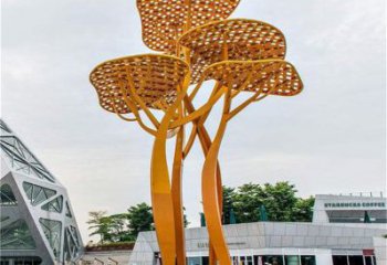 大型不銹鋼鏤空蘑菇雕塑