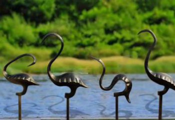 不銹鋼仿銅公園池塘雕塑仙鶴