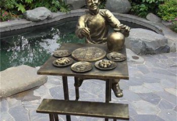 火鍋雕塑慕名而來,將湯滾放入硯瓦槽中飲用。重慶火鍋雕塑把它取成象形,因?yàn)樗雌饋硐癯幫卟?,所以叫它硯瓦槽?/p>
