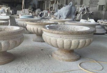 黃銹巖制作的歐式花缽擺件