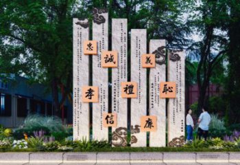 該景觀雕塑巧妙運(yùn)用石雕與印章元素,打造出獨(dú)特的藝術(shù)呈現(xiàn)。石雕作為主要材質(zhì),賦予雕塑厚重、沉穩(wěn)的質(zhì)感,彰顯出歷史的積淀與文化的厚重底蘊(yùn),讓觀者能從觸感與視覺上,直觀感受到藝術(shù)與文化的力量。印章元素的融入,是設(shè)計(jì)的點(diǎn)睛之筆,印章在中國(guó)文化里象征著權(quán)威、誠(chéng)信與承諾,將其與石雕結(jié)合,仿佛是在時(shí)光的長(zhǎng)卷上蓋下一枚枚文化之印,既體現(xiàn)出對(duì)傳統(tǒng)文化的致敬與傳承,又為雕塑增添了獨(dú)特的文化標(biāo)識(shí)。整體雕塑置于景觀環(huán)境中,與周圍的綠植、場(chǎng)地等相互映襯,成為一處兼具藝術(shù)觀賞與文化傳播功能的景觀節(jié)點(diǎn),讓人們?cè)谛蕾p雕塑藝術(shù)之美的同時(shí),也能從印章與石雕所承載的文化內(nèi)涵中,汲取精神力量,感受文化的熏陶與洗禮。