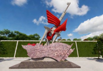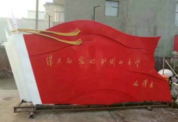 這座雕塑以紅色旗幟與革命浮雕為核心元素,采用不銹鋼等金屬材質(zhì)打造,是一座兼具藝術(shù)性與精神性的景觀雕塑。它通過硬朗的旗桿、動感的紅旗與細膩的基座浮雕,凝練了革命先輩的奮斗歷程與新時代的奮進精神,既以現(xiàn)代金屬雕塑的質(zhì)感彰顯視覺沖擊力,又以紅色主題的深刻內(nèi)涵成為傳承信仰的精神地標。