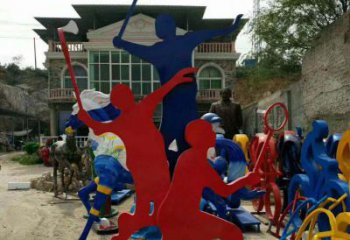 玻璃鋼仿銅羽毛球籃球運(yùn)動(dòng)主題人物小品雕塑